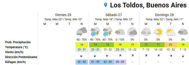El sábado se anticipa con lluvias intensas y ráfagas de viento en General Viamonte, mientras que el domingo traerá calma y cielos más despejados. Las autoridades recomiendan precaución ante posibles fenómenos severos.