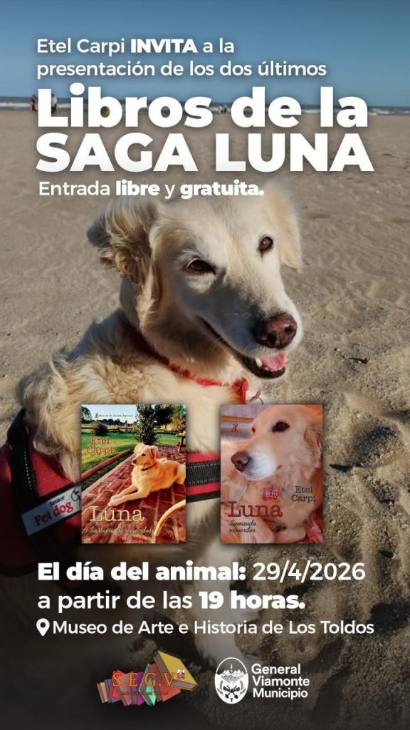 El próximo 29 de abril, fecha en la que se celebra el Día del Animal, la escritora Etel Carpi presentará en el Museo de Arte e Historia de Los Toldos sus dos más recientes obras: Su diario de recuerdos (2024) y Sumando recuerdos (2025). Con estos títulos concluye la saga literaria LUNA, dedicada a los perros, esos maravillosos compañeros de vida que nos enseñan con su amor incondicional y su inteligencia única.